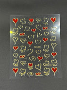 Coconoir Beauty - Nail Decal - 3D Swirl Hearts Red/Gold