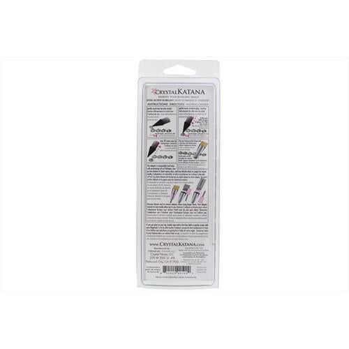 Improve your "blinging" skills! The Crystal Katana by CrystalNinja was created by award-winning Flatback Specialist and master artist, Kellie DeFries and has proven to shave time off the process of hand setting-gluing crystals and rhinestones, ss3-ss40. Do you use regular beeswax for transferring your light objects? You'll find that it's too soft and leaves a wax residue on your application surface. Tweezers cramp your hands and fling crystals across the room! Ouch! Someone's going to poke their eye out! Do other china markers or grease pens break, chip, and leave extra residue on crystals? Have you noticed the taller, sharper table facet of the later issued crystals shredding other pickers and tips to smithereens? The answer to all of this madness is the Crystal Katana BY the Crystal Ninja!