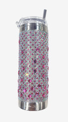 Indulge in a 20 oz tumbler of luxurious, vacuumed-sealed stainless steel. Whether you desire a hot or cold beverage, this double-walled tumbler will keep your drink at the perfect temperature. Adorned with a resin crystal design, each tumbler comes with a sophisticated food grade Triton screw on lid and straw. Packaged in an elegant velvet gift bag, it's the perfect indulgent treat for yourself or a loved one.